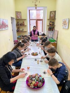 Окрім творчої частини, школярам була представлена цікава пізнавальна екскурсія з елементами театралізації, де діти дізнались про значення орнаментів і традиції святкування Великодня, чому писанка вважалася оберегом і звідки походить легенда про фарбування яєць на свято. Елементи театралізації допомогли учням краще уявити атмосферу давнього свята, зрозуміти, чому писанка була важливою частиною родинних обрядів.